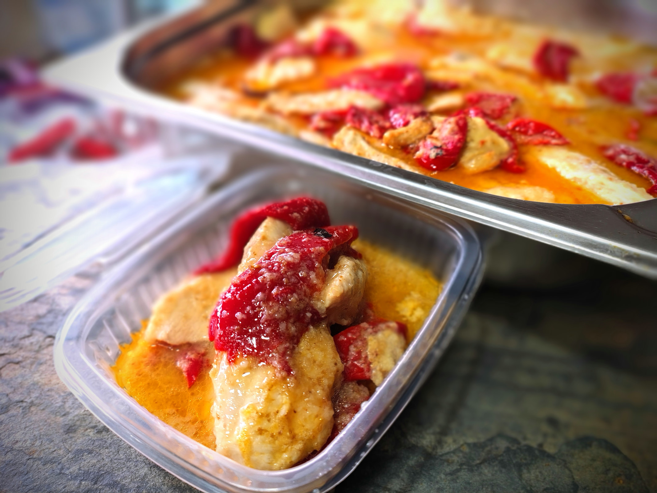 Nuestras pechugas con pimientos están elaboradas de forma casera, con pechugas empanadas acompañadas de una salsa de pimientos suave y sabrosa, que aporta jugosidad y un sabor equilibrado al plato.