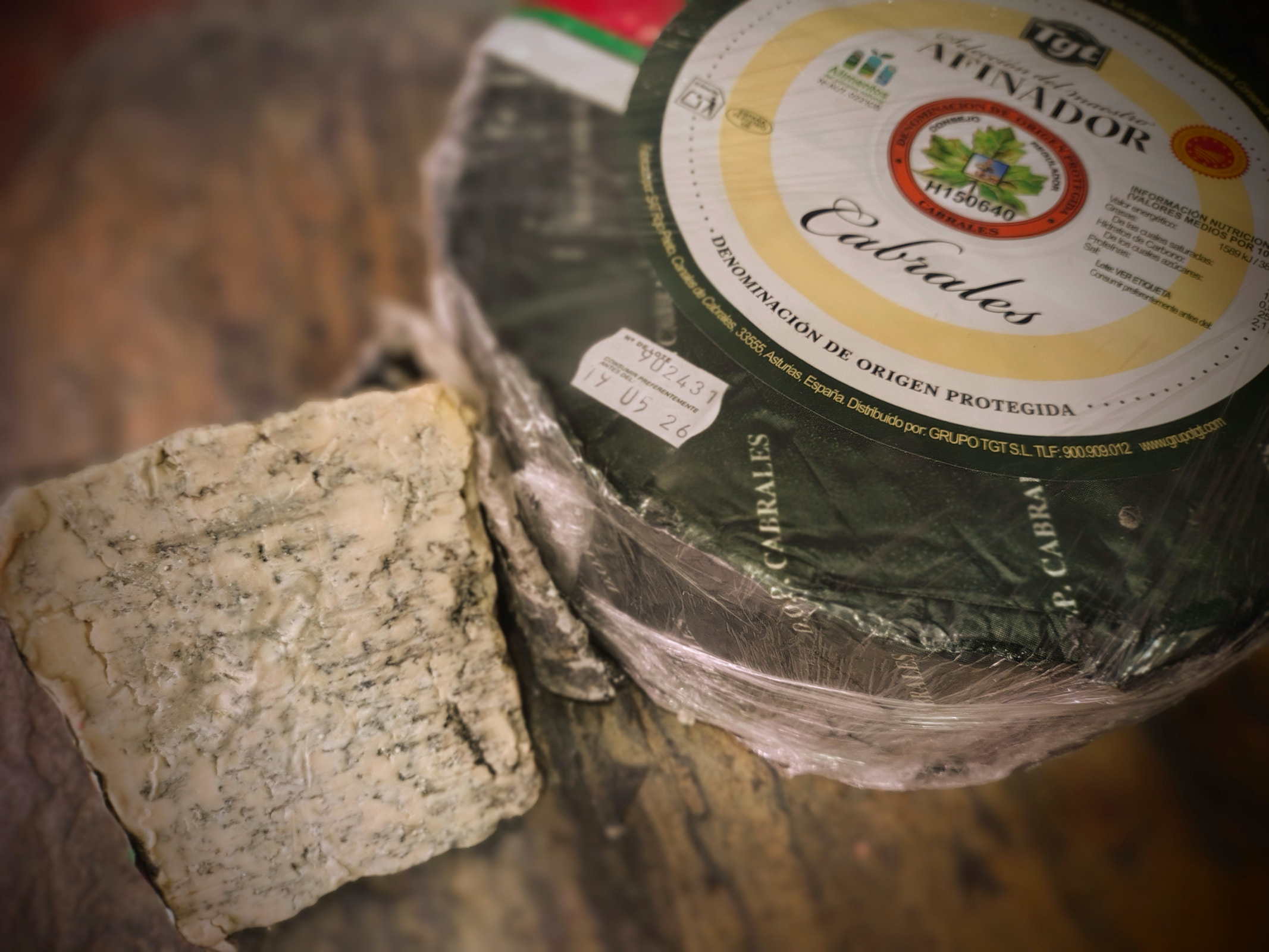 El queso Cabrales (Denominación de Origen Protegida) es uno de los quesos azules más emblemáticos de España. Elaborado de forma tradicional y madurado en cuevas naturales, desarrolla un sabor intenso, potente y muy característico, con una textura cremosa y vetas azuladas bien definidas.